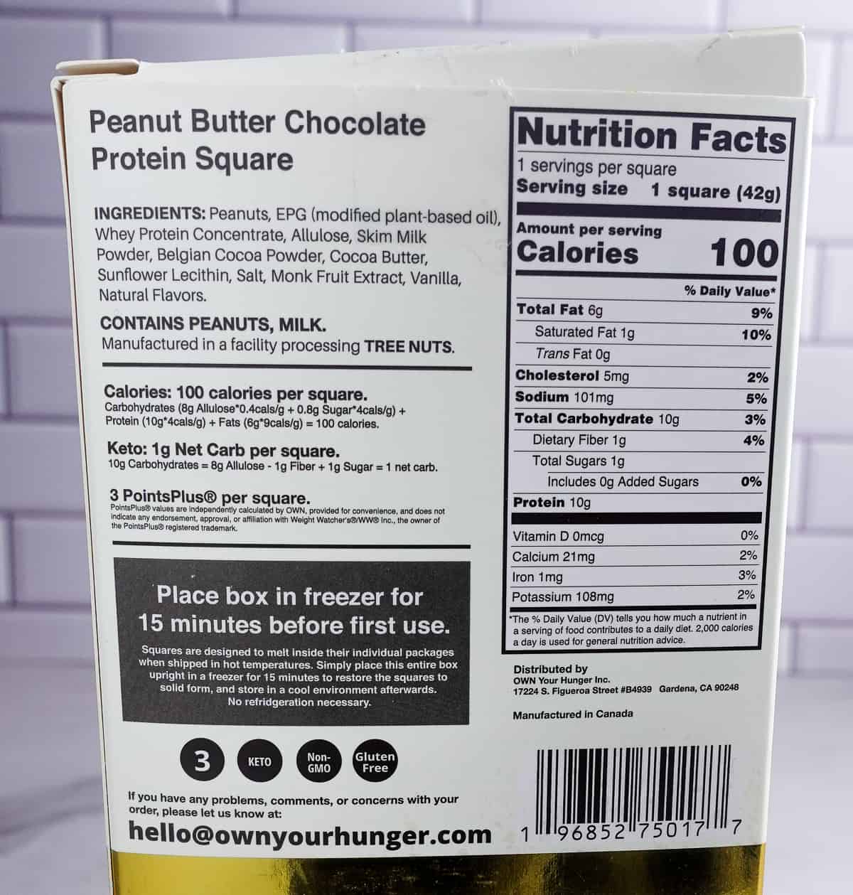 For all the keto folks out there, each square contains only 1 gram of net carbs, mostly due to Allulose, and they’re a solid snack for anyone doing Weight Watchers.